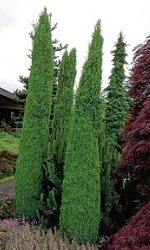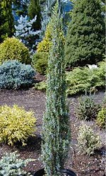 Wolno rosnący krzew o wąskokolumnowym (0,3m.) pokroju, osiągający w