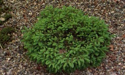 Karłowy, gęsty krzew o pokroju gniazdkowym, u młodych roślin z