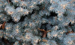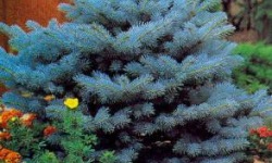 wysokości. Pędy ma krótkie, sztywne, zaś igły srebrzystoniebieskie i kłujące. Ma