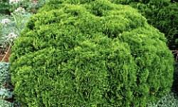 Karłowy, kulisty krzew, osiągający w wieku 10 lat 0,4m średnicy. Ma
