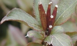 Krzew o pędach sztywnych, dość gęsty, dorastający do 2-2,5 metra